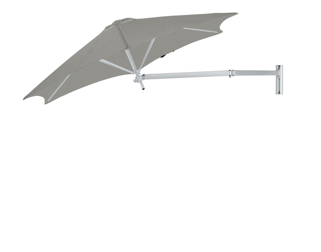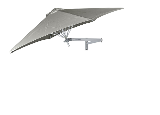 Parasol mural Paraflex de marque UMBROSA Forme : rond Dimensions : 2.7 mètres Coloris : GREY toile Solidum Fourni avec son bras NEO de 2 mètres et son support de fixation murale Housse de protection offerte Le paraflex est un parasol avec une fixation murale, peu encombrant, permettant de vous abriter du soleil, sans base au sol. *pour la livraison ou la livraison et installation, cela est possible uniquement dans un rayon de 25km autour de Cers (34420). Livraison sous 3 semaines ouvrées. Livraison et installation sous 5 semaines ouvrées.